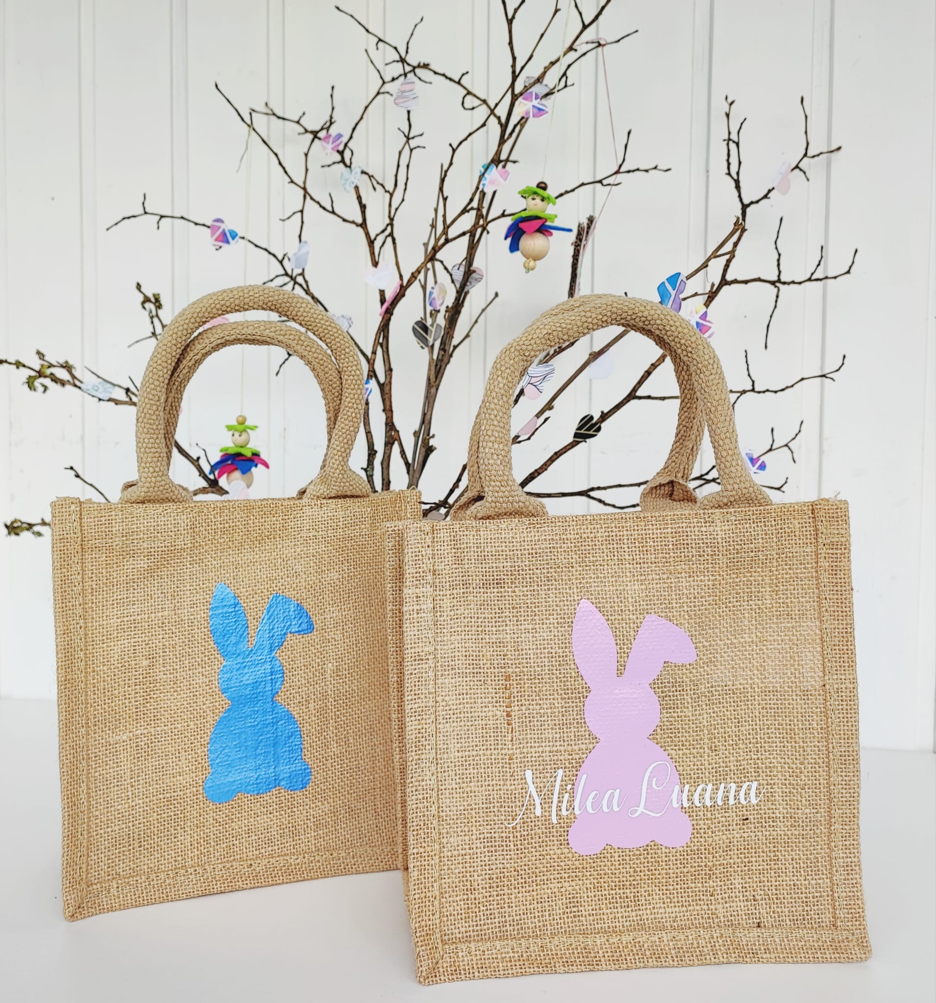 Kleine, auffallende Tasche aus 100% Jute mit einem süßen Osterhasen ♥