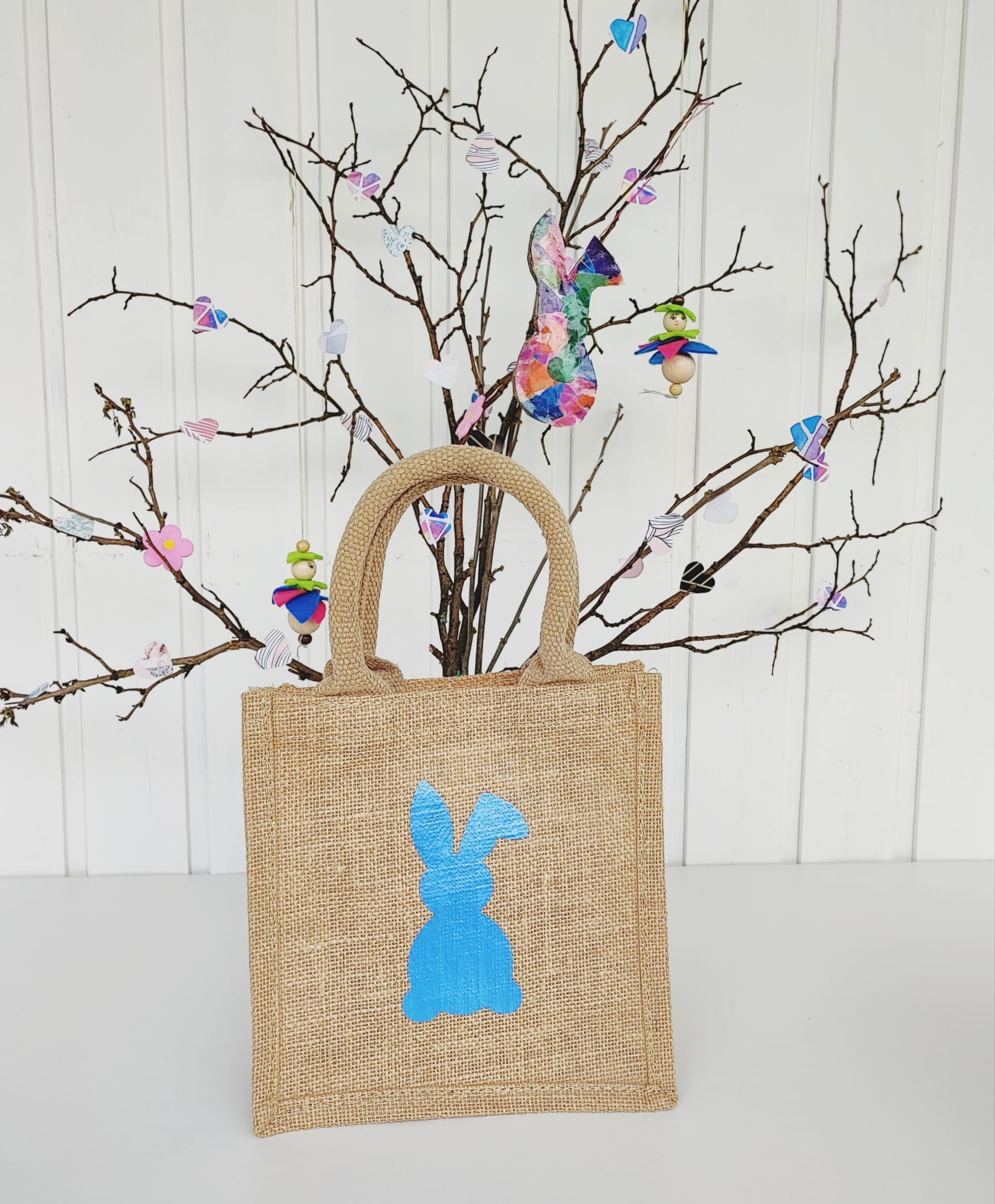 Unsere Tasche hat eine tolle Größe für kleine Geschenke, Schoko-Osterhasen, die Ostereiersuche oder als Osternest.